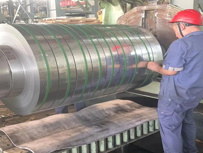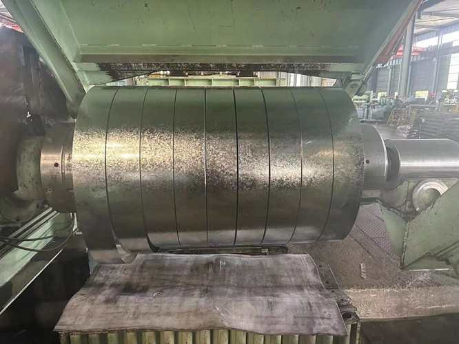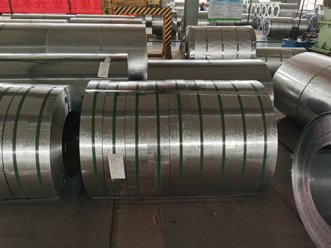 鍍鋅分條是以熱軋鋼帶或冷軋鋼帶為基板,經(jīng)過(guò)連續(xù)熱浸鍍鋅工藝而生產(chǎn)出來(lái)的材料。經(jīng)卷取以卷狀供貨的熱鍍鋅卷;經(jīng)橫切以矩形平板供貨的為熱鍍鋅板,由板切割可得鍍鋅分條。